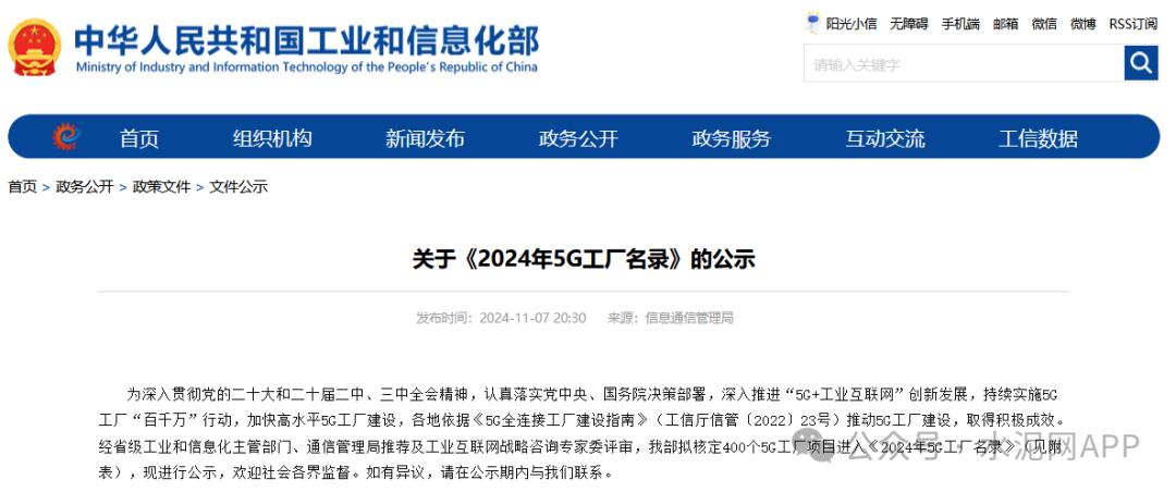 11月7日,工信部公示了《2024年5G工廠名錄》。公示時(shí)間:2024年11月8日至2024年11月12日。
