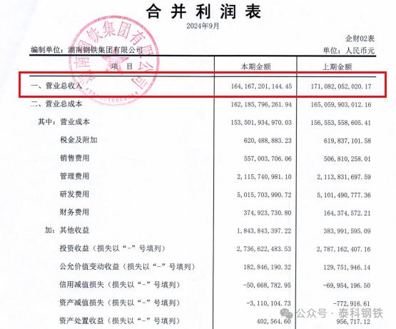 近日,湖南鋼鐵集團有限公司2024年三季度合并及母公司財務報表公布,湖南鋼鐵集團2024年1-9月營收1641.67億元(2023年同期1710.82億元),凈利潤58.25億元(2023年同期84.43億元)。
