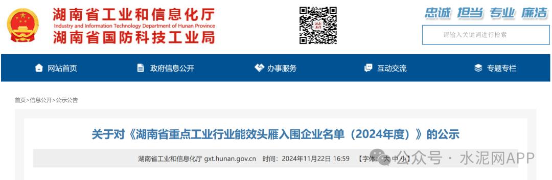 近日,?湖南省工業(yè)通信業(yè)節(jié)能監(jiān)察中心發(fā)布關(guān)于對(duì)《湖南省重點(diǎn)工業(yè)行業(yè)能效頭雁入圍企業(yè)名單(2024年度)》的公示。