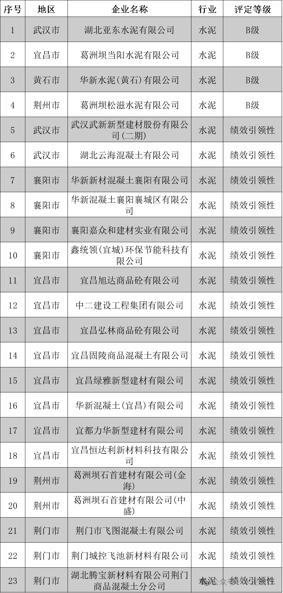 根據(jù)公告,水泥行業(yè)4家企業(yè)為B級,19家企業(yè)績效評級為績效引領(lǐng)性。