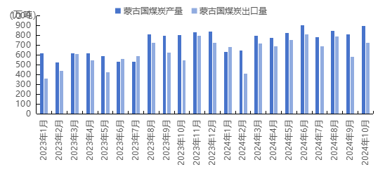 據(jù)蒙古國國家統(tǒng)計辦公室發(fā)布最新統(tǒng)計數(shù)據(jù)顯示,10月蒙古國原煤產(chǎn)量893.9萬噸,同比增速達(dá)10.88%,較上月806萬噸相比增加87.9萬噸,環(huán)比增速10.91%。2024年1-10月蒙古國煤炭產(chǎn)量累計為8109.58萬噸,較上年同期相比增加1661.7萬噸,同比增長25.8%。其中,硬煤(Hard coal)產(chǎn)量累計6964.6萬噸,同比增長26.1%;褐煤(Brown coal)產(chǎn)量累計1144.9萬噸,同比增長23.7%。根據(jù)蒙古國海關(guān)外貿(mào)統(tǒng)計報告數(shù)據(jù)顯示,2024年1-10月蒙古已累計出口煤炭6849.34萬噸,較上年同期相比增加1409.61萬噸,增速達(dá)25.9%。其中,10月蒙古煤炭出口量達(dá)727.44萬噸,同比增加33%,環(huán)比增加25.1%。