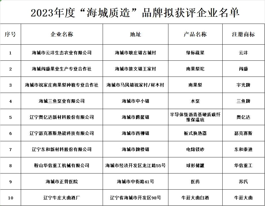 附件:2023年度“海城質(zhì)造”品牌擬獲評企業(yè)名單