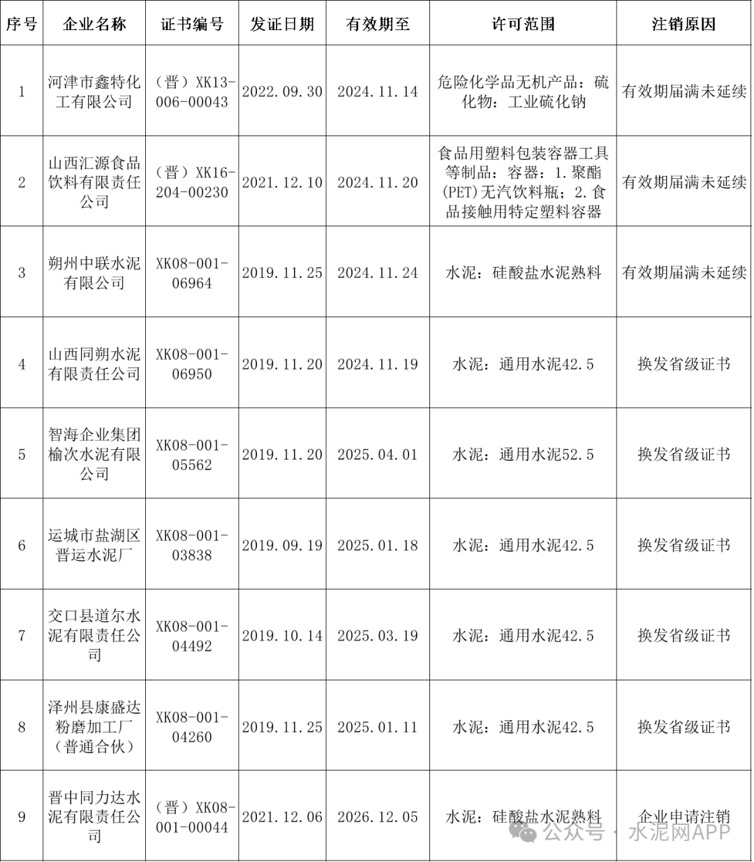 其余多家水泥企業(yè)換發(fā)省級(jí)證書(shū)。