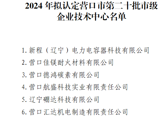 附件:2024年擬認(rèn)定營口市第二十批市級企業(yè)技術(shù)中心名單