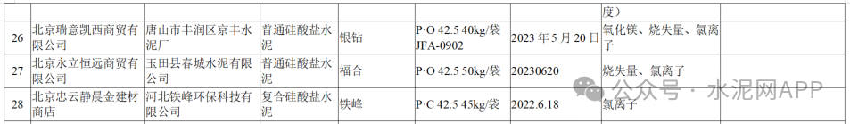 其中檢出28批次水泥產(chǎn)品質(zhì)量不合格,主要質(zhì)量問(wèn)題是水泥的燒失量、氯離子項(xiàng)目。