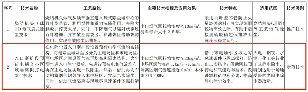 其中,包括三項(xiàng)水泥行業(yè)先進(jìn)技術(shù),分別是:入口漸擴(kuò)段預(yù)荷電耦合小區(qū)域隔離振打電除塵技術(shù):適用于火電、鋼鐵、水泥、化工等行業(yè)干式靜電除塵,特別適用于場(chǎng)地受限的老舊電除塵器改造;