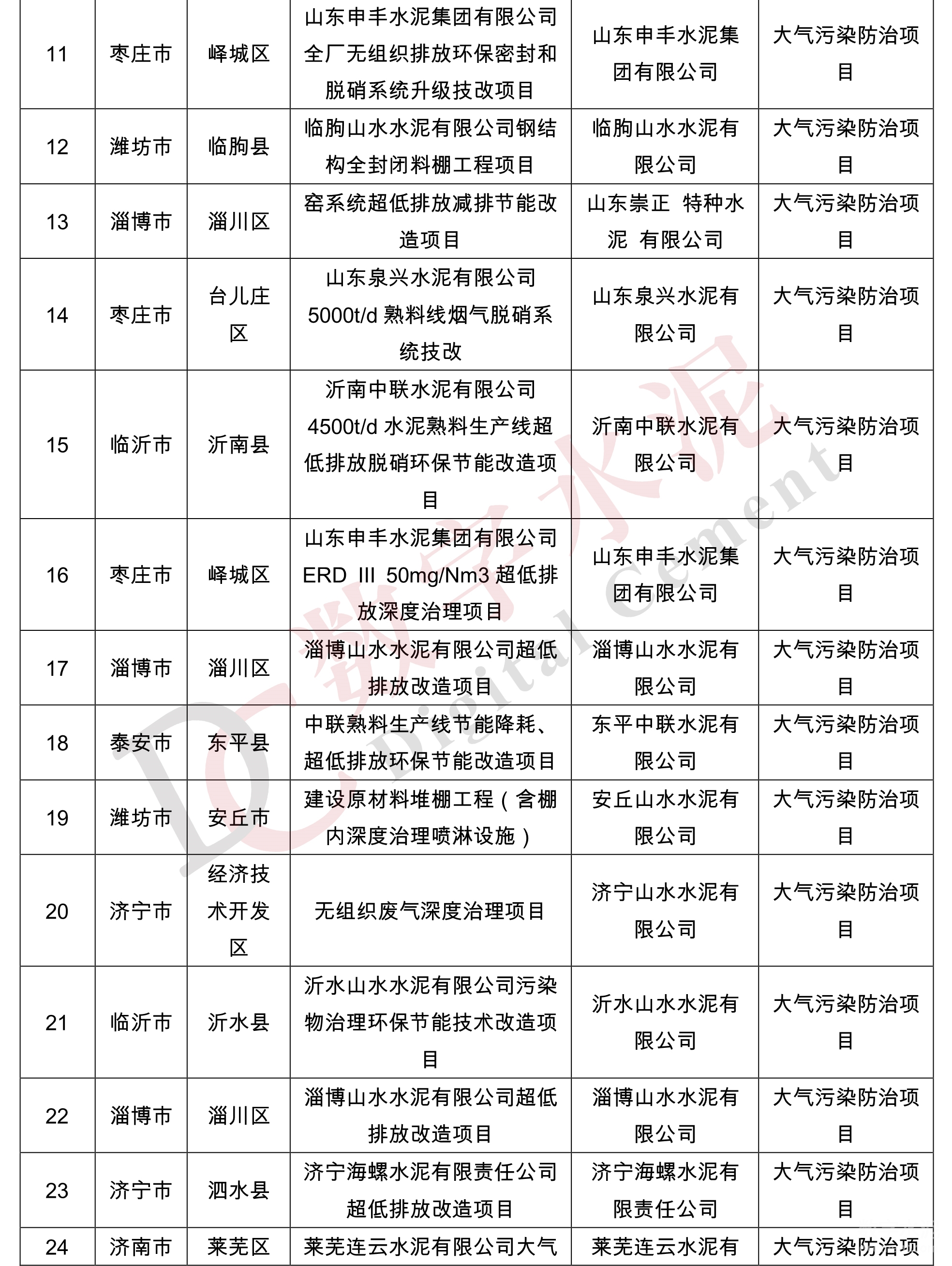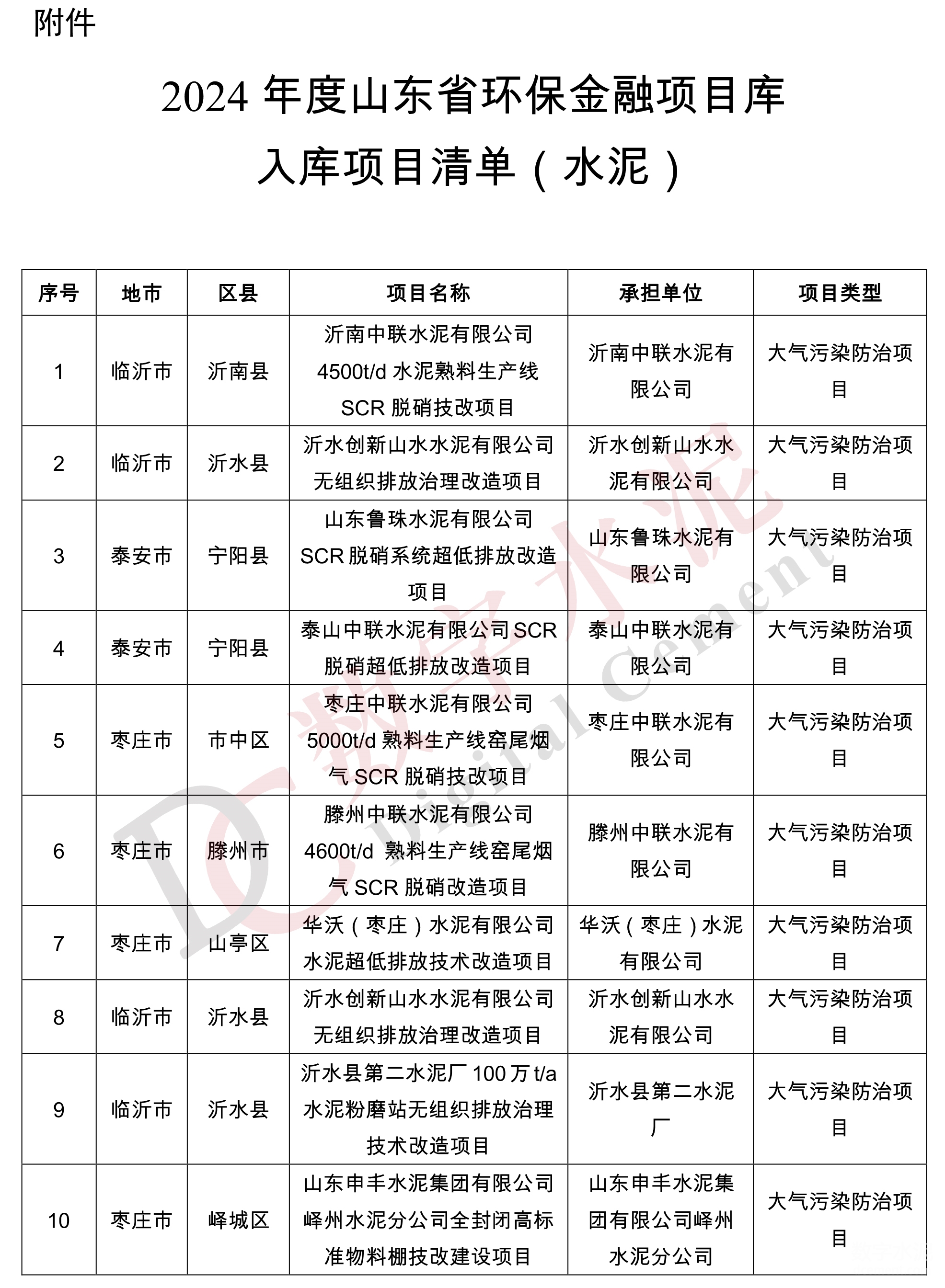根據(jù)公示,中聯(lián)、山水等多家水泥企業(yè)技改項目擬入選《2024年度山東省環(huán)保金融項目庫入庫項目清單》。
