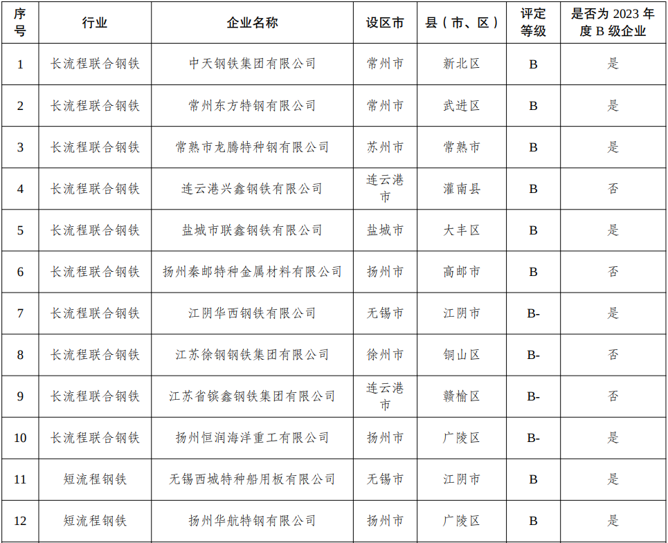 近日,江蘇省生態(tài)環(huán)境廳網(wǎng)站發(fā)布了《江蘇省生態(tài)環(huán)境廳關(guān)于2024年度重污染天氣重點行業(yè)績效評價A級、引領(lǐng)性和B(含B-)級企業(yè)名單的公示》(以下簡稱《公示》)。