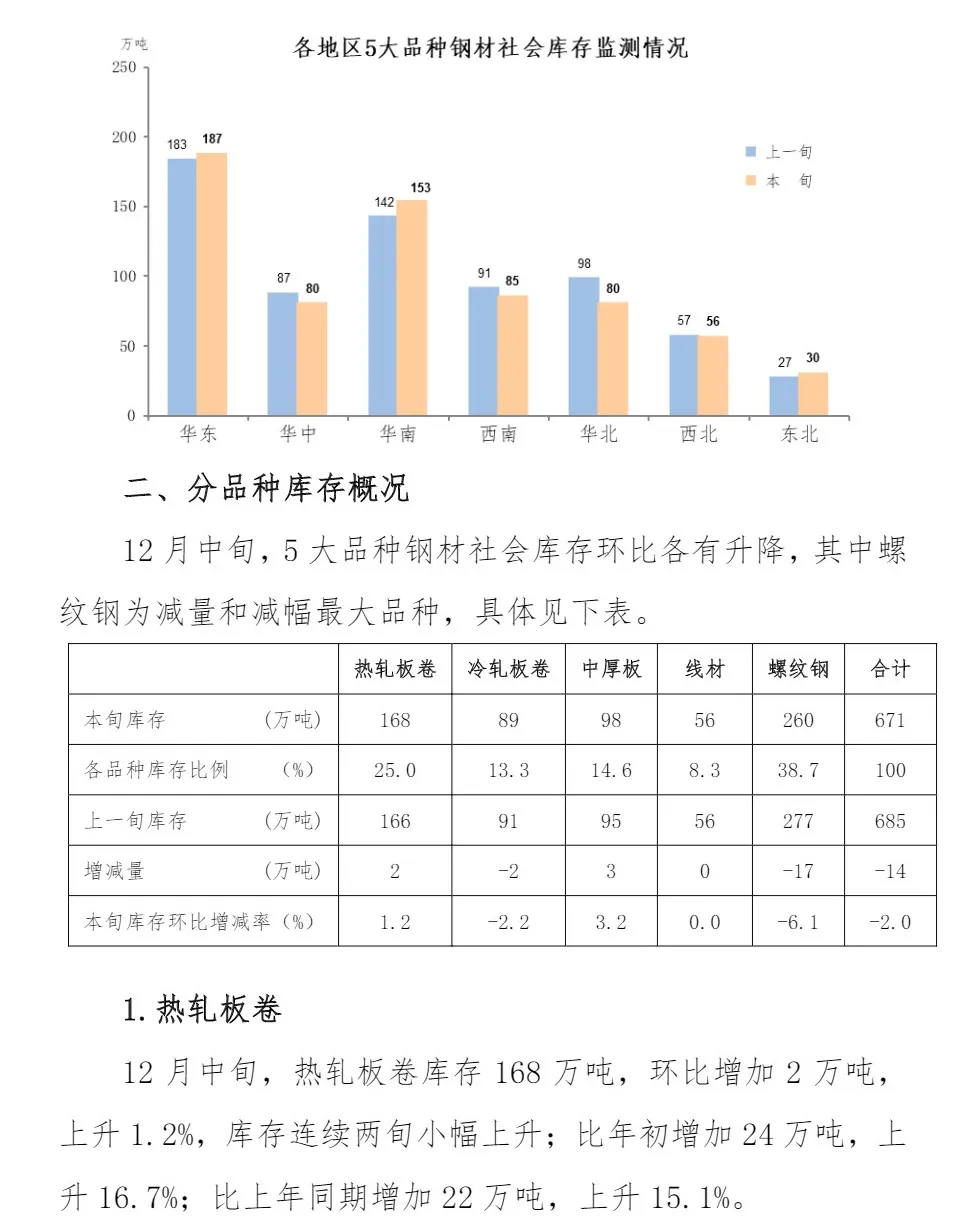 12月中旬鋼材社會(huì)庫(kù)存監(jiān)測(cè)旬報(bào)?