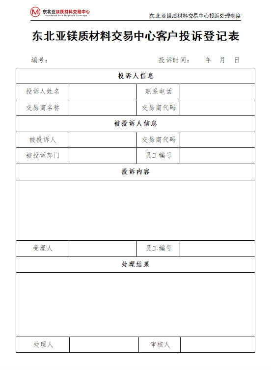 第一條 為有效管理東北亞鎂質(zhì)材料交易中心(以下簡(jiǎn)稱(chēng)“交易中心”)交易商投訴事宜,特制定本制度。