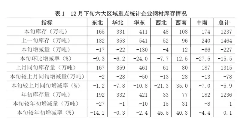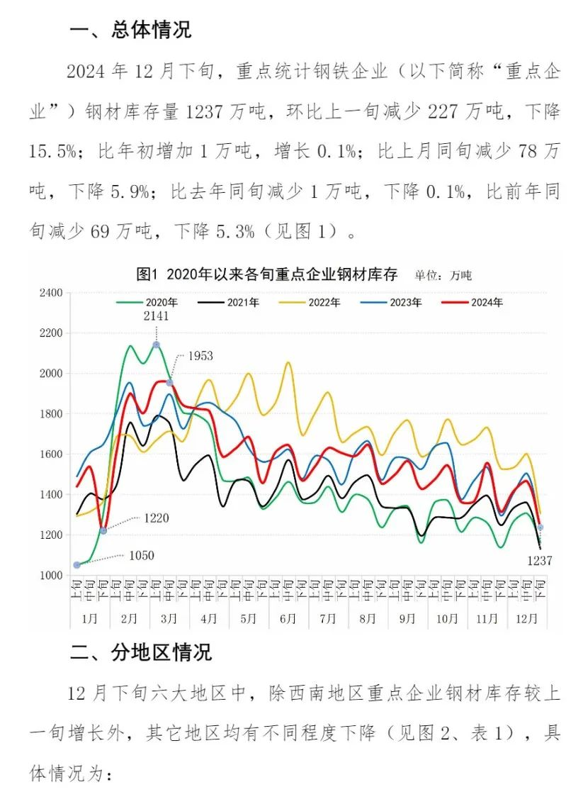 2024年12月下旬重點(diǎn)企業(yè)鋼材庫存旬報(bào)
