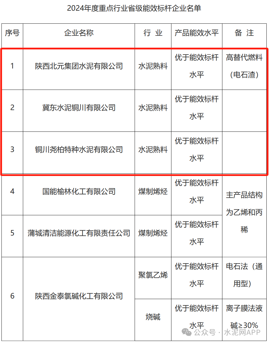 其中,陜西北元集團(tuán)水泥有限公司、冀東水泥銅川有限公司、銅川堯柏特種水泥有限公司產(chǎn)品能效均優(yōu)于標(biāo)桿水平。