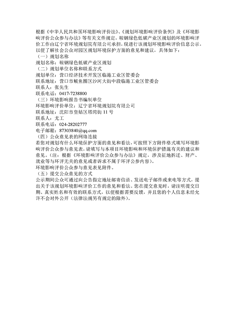 鞍鋼綠色低碳產(chǎn)業(yè)區(qū)規(guī)劃環(huán)境影響評(píng)價(jià)公示