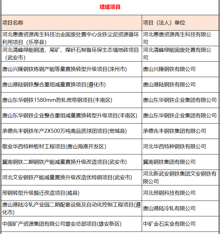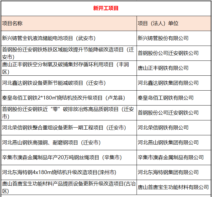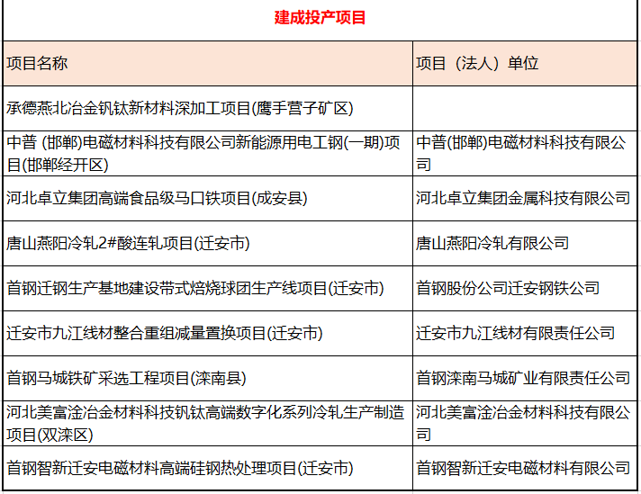 其中鋼鐵行業(yè)相關(guān)項目如下: