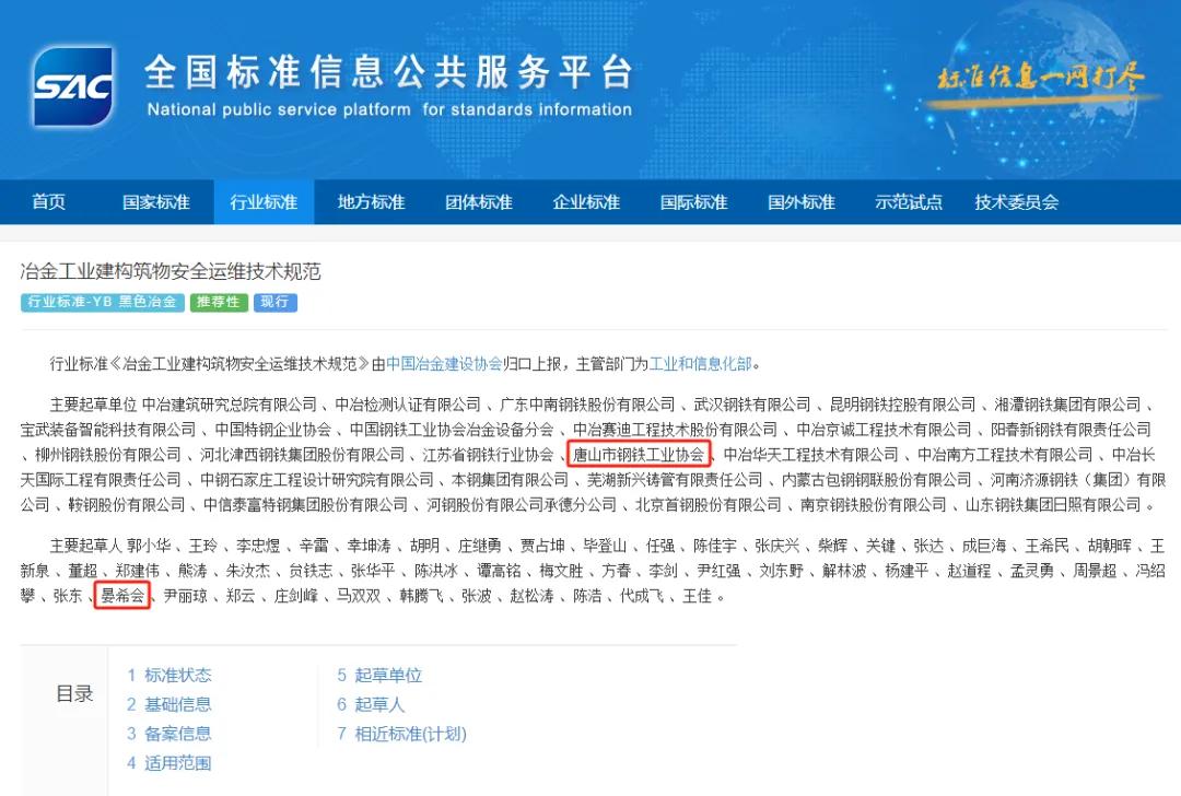 近日,唐山市鋼鐵工業(yè)協(xié)會(huì)參與編制的行業(yè)標(biāo)準(zhǔn)《冶金工業(yè)建構(gòu)筑物安全運(yùn)維技術(shù)規(guī)范》(YB/T 6328-2024)正式發(fā)布,于2024年10月1日開始實(shí)施。這一行業(yè)標(biāo)準(zhǔn)的出臺(tái),標(biāo)志著冶金行業(yè)在安全生產(chǎn)與運(yùn)維管理領(lǐng)域邁出了堅(jiān)實(shí)的一步,為提升工業(yè)建構(gòu)筑物的安全性和可靠性提供了權(quán)威指導(dǎo)。