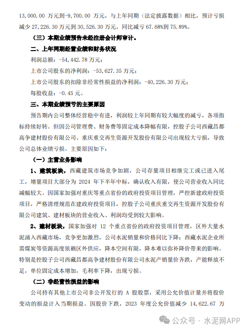 預(yù)告期內(nèi)公司整體經(jīng)營穩(wěn)中有進,利潤較上年同期有較大幅度的減虧,各項指標持續(xù)好轉(zhuǎn)。但因公司管理費、財務(wù)費等固定成本降幅有限,控股子公司西藏昌都高爭建材股份有限公司、重慶重交再生資源開發(fā)股份有限公司出現(xiàn)較大虧損,導(dǎo)致公司總體業(yè)績虧損。