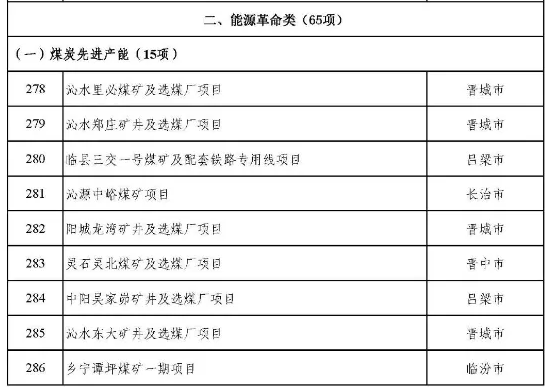 近日,山西省人民政府辦公廳印發(fā)2025年省級(jí)重點(diǎn)工程項(xiàng)目名單,共涉及611個(gè)省級(jí)重點(diǎn)工程項(xiàng)目(不含涉密項(xiàng)目)。包括277項(xiàng)產(chǎn)業(yè)轉(zhuǎn)型類(lèi)、65項(xiàng)能源革命類(lèi)、57項(xiàng)科教人才類(lèi)、121項(xiàng)基礎(chǔ)設(shè)施類(lèi)、91項(xiàng)社會(huì)民生類(lèi)。其中煤炭項(xiàng)目共有24個(gè)。
