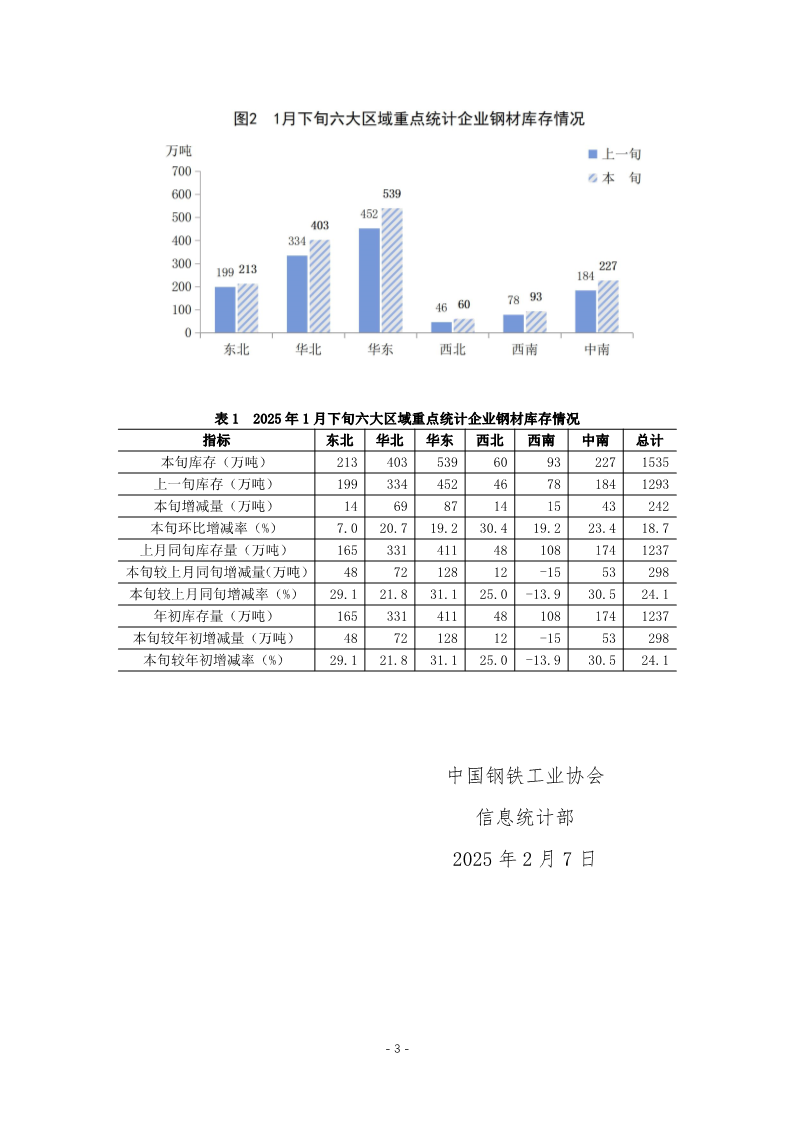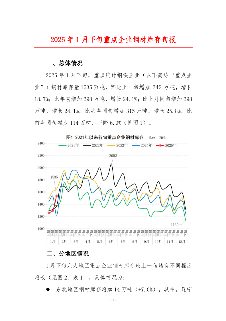 2025年1月下旬重點企業(yè)鋼材庫存旬報