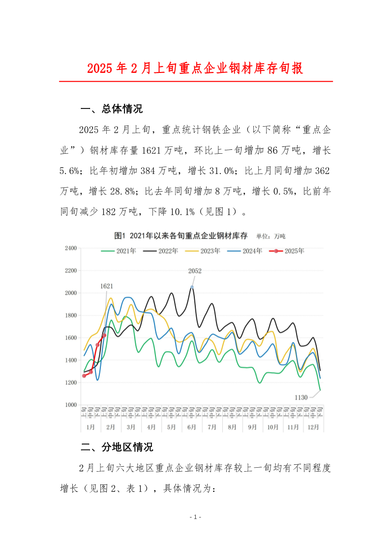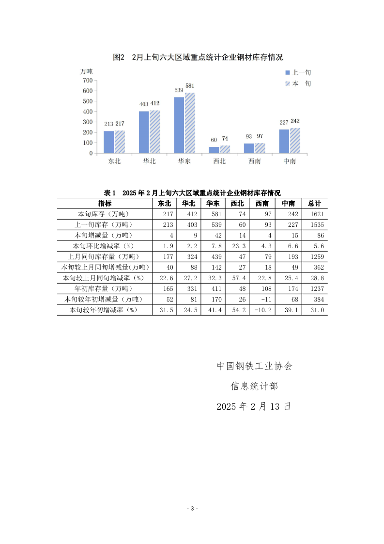 2025年2月上旬重點企業(yè)鋼材庫存旬報