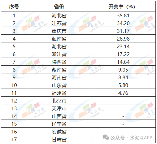 *以上數(shù)據(jù),根據(jù)中國(guó)水泥網(wǎng)大數(shù)據(jù)平臺(tái)測(cè)算,開(kāi)窯率與實(shí)際或有出入,開(kāi)窯率排行僅供參考。