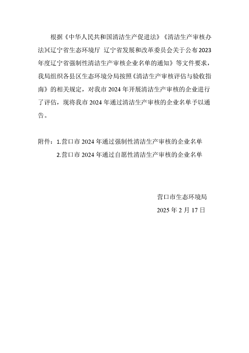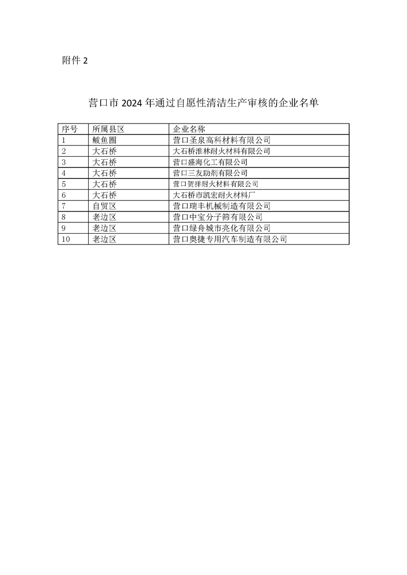 大石橋淮林耐火、賀祥耐火等多家企業(yè)通過營口市2024年清潔生產(chǎn)審核?