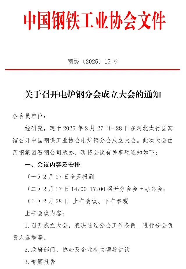 關(guān)于召開電爐鋼分會(huì)成立大會(huì)的通知