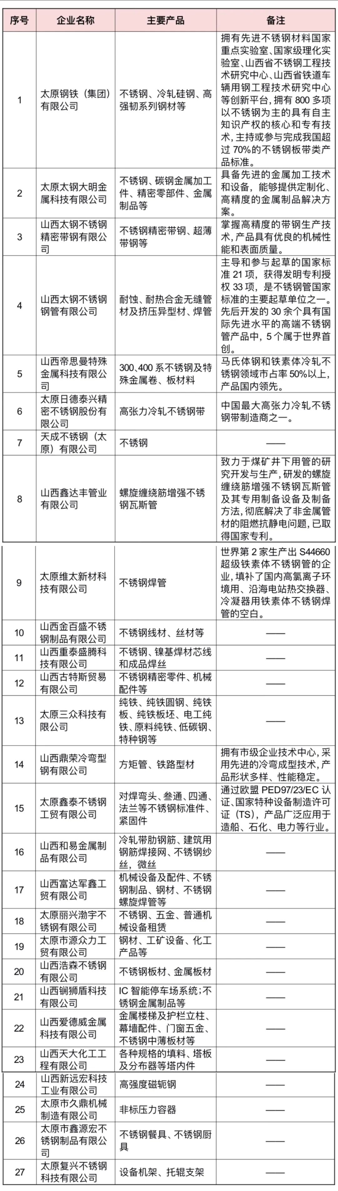 第一,龍頭企業(yè)帶動(dòng)。太鋼集團(tuán)是省特鋼產(chǎn)業(yè)鏈“鏈主”企業(yè)和太原市特種金屬材料產(chǎn)業(yè)鏈“鏈主”企業(yè),已形成以不銹鋼、精密帶鋼、冷軋硅鋼、高強(qiáng)韌系列鋼材為主,涵蓋板、管、型、線、帶、箔在內(nèi)的特鋼產(chǎn)品集群。2023年太鋼集團(tuán)太原地區(qū)鋼產(chǎn)量1229萬(wàn)噸,其中不銹鋼397萬(wàn)噸,實(shí)現(xiàn)產(chǎn)值1003億元、利潤(rùn)29.9億元,實(shí)現(xiàn)稅金23億元。依托太鋼集團(tuán)在特鋼冶煉及壓延加工等領(lǐng)域的突出優(yōu)勢(shì),帶動(dòng)產(chǎn)業(yè)鏈向下游延伸,集聚太鋼大明、山西帝思曼等深加工企業(yè),特鋼材料本土協(xié)作配套率達(dá)到20.2%。