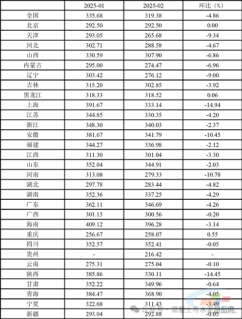 2月,從30個省市混凝土的平均價格來看,價格下跌的有26個;價格上漲的有2個。