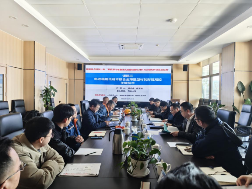 2025年3月20日,東北大學(xué)牽頭,聯(lián)合寶鋼金屬有限公司共同承擔(dān)的國(guó)家重點(diǎn)研發(fā)計(jì)劃課題“電池箱用低成本鎂合金薄壁型材的形性雙控關(guān)鍵技術(shù)”項(xiàng)目成果評(píng)審會(huì)在合肥市巢湖市寶瑪克(合肥)科技有限公司成功召開;評(píng)審會(huì)上,項(xiàng)目負(fù)責(zé)人東北大學(xué)潘虎成教授和寶鋼金屬有限公司徐玉棱博士進(jìn)行了課題進(jìn)展及成果匯報(bào)。