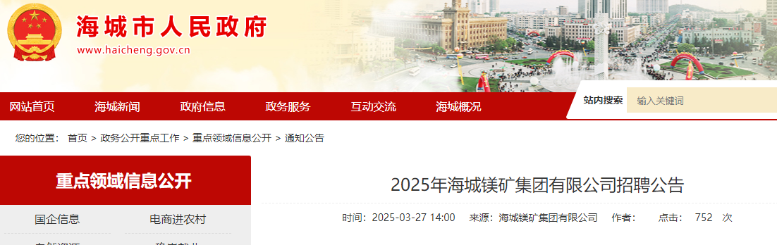 為切實(shí)做好海城鎂礦集團(tuán)有限公司人才培養(yǎng)及可持續(xù)發(fā)展的人才戰(zhàn)略,進(jìn)一步優(yōu)化人才結(jié)構(gòu),為企業(yè)未來發(fā)展做好人才儲(chǔ)備,2025年海鎂集團(tuán)擬計(jì)劃招聘64人。具體招聘崗位及要求如下: