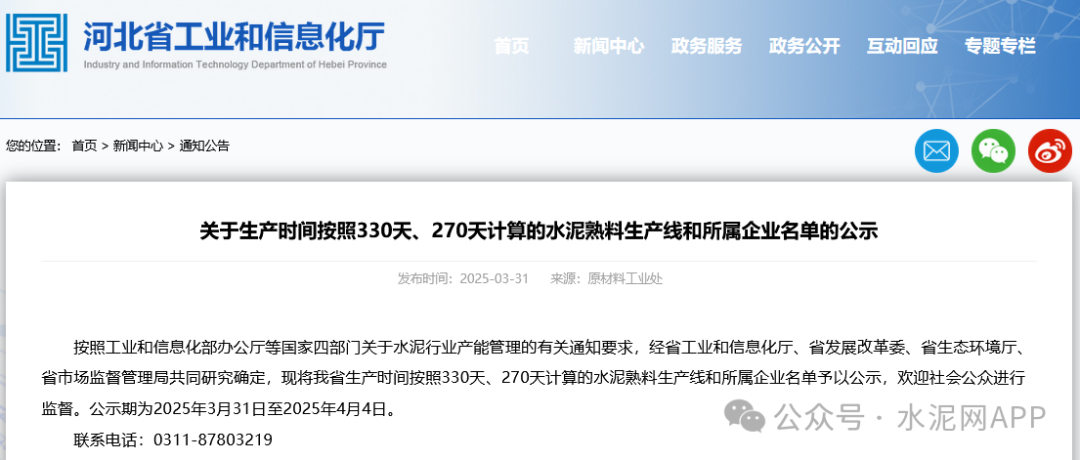 近日,河北省工信廳發(fā)布“關于生產(chǎn)時間按照330天、270天計算的水泥熟料生產(chǎn)線和所屬企業(yè)名單的公示”稱,按照工業(yè)和信息化部辦公廳等國家四部門關于水泥行業(yè)產(chǎn)能管理的有關通知要求,經(jīng)省工業(yè)和信息化廳、省發(fā)展改革委、省生態(tài)環(huán)境廳、省市場監(jiān)督管理局共同研究確定,現(xiàn)將河北省生產(chǎn)時間按照330天、270天計算的水泥熟料生產(chǎn)線和所屬企業(yè)名單予以公示。內容顯示,1家水泥企業(yè)生產(chǎn)時間按照330天計算,22家企業(yè)按照270天計算。(據(jù)了解,按照最新版水泥行業(yè)產(chǎn)能置換實施辦法,水泥年產(chǎn)能天數(shù)按照300天計算。)