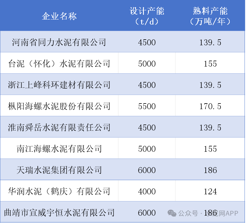 據(jù)統(tǒng)計,今年以來,加上上述生產(chǎn)線已有9條水泥熟料生產(chǎn)線建設項目不再推進,合計年產(chǎn)能1395萬噸(按照310天計算),詳情見下表: