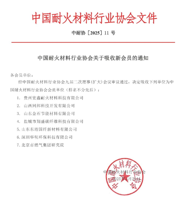 中國耐火材料行業(yè)協會關于吸收新會員的通知