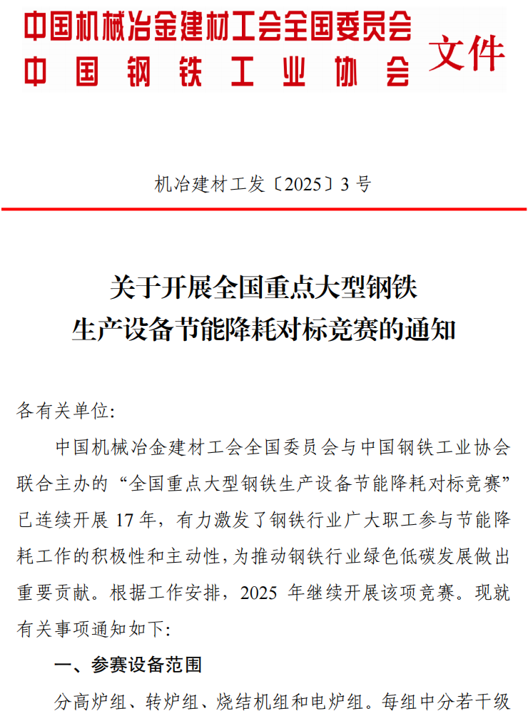 關(guān)于開展全國重點大型鋼鐵生產(chǎn)設(shè)備節(jié)能降耗對標競賽的通知