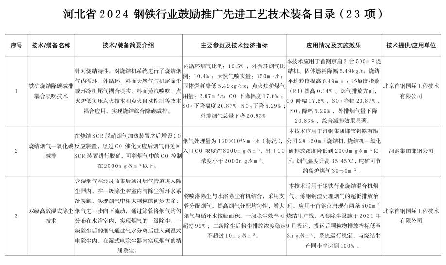 為貫徹落實(shí)國務(wù)院《推動大規(guī)模設(shè)備更新和消費(fèi)品以舊換新行動方案》和河北省委、省政府工作部署,加快推動河北省鋼鐵行業(yè)技術(shù)裝備高端化升級改造,激發(fā)高質(zhì)量發(fā)展新動能,經(jīng)河北省工業(yè)和信息化廳廣泛征集、審慎篩選,編制了《河北省2024年鋼鐵行業(yè)先進(jìn)工藝技術(shù)裝備推薦目錄》。