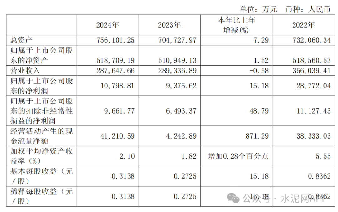 4月21日,尖峰集團(tuán)發(fā)布2024年年報,公司2024年營業(yè)收入為28.76億元,同比下降0.58%;歸母凈利潤為1.08億元,同比增長15.18%;扣非歸母凈利潤為9661.77萬元,同比增長48.79%。