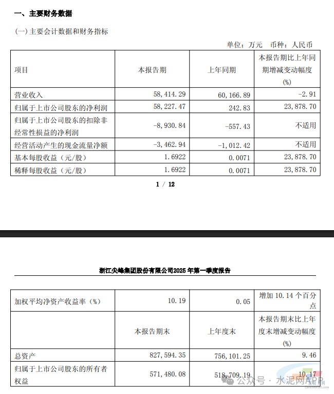 4月29日,浙江尖峰集團(tuán)股份有限公司(尖峰集團(tuán),600668.SH)披露一季報(bào),2025年第一季度公司營(yíng)業(yè)收入為5.84億元,同比下降2.91%;歸屬于上市公司股東的凈利潤(rùn)為5.82億元,同比增長(zhǎng)23878.70%;主要系報(bào)告期公司權(quán)益法核算的聯(lián)營(yíng)企業(yè)天士力集團(tuán)利潤(rùn)大幅增加所致。