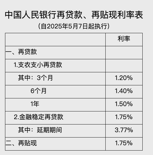 央視網消息:5月7日,中國人民銀行公布再貸款、再貼現利率表:3個月、6個月和1年期支農支小再貸款利率分別為1.2%、1.4%和1.5%,金融穩(wěn)定再貸款利率為1.75%,其中延期期間為3.77%,再貼現利率為1.75%。
