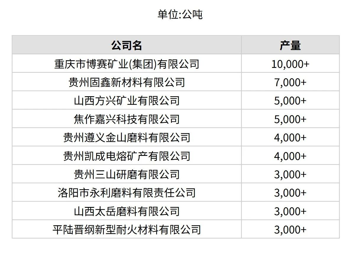 3月份中國(guó)產(chǎn)量最大10家棕剛玉生產(chǎn)商
