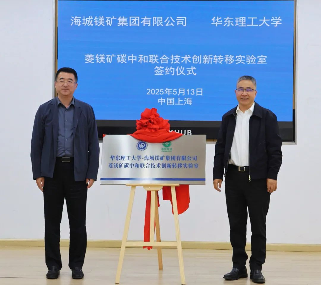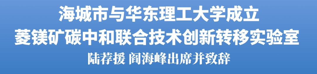 5月13日,海城市與華東理工大學(xué)合作建設(shè)的“菱鎂礦碳中和聯(lián)合技術(shù)創(chuàng)新轉(zhuǎn)移實驗室”揭牌儀式在華東理工大學(xué)舉行。鞍山市委常委、海城市委書記陸薦援,華東理工大學(xué)黨委常委、副校長閻海峰出席儀式并為實驗室揭牌。