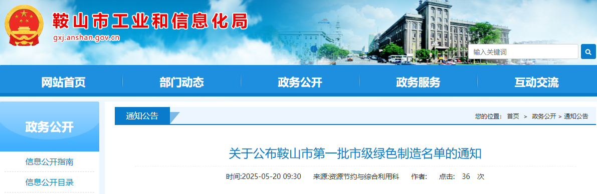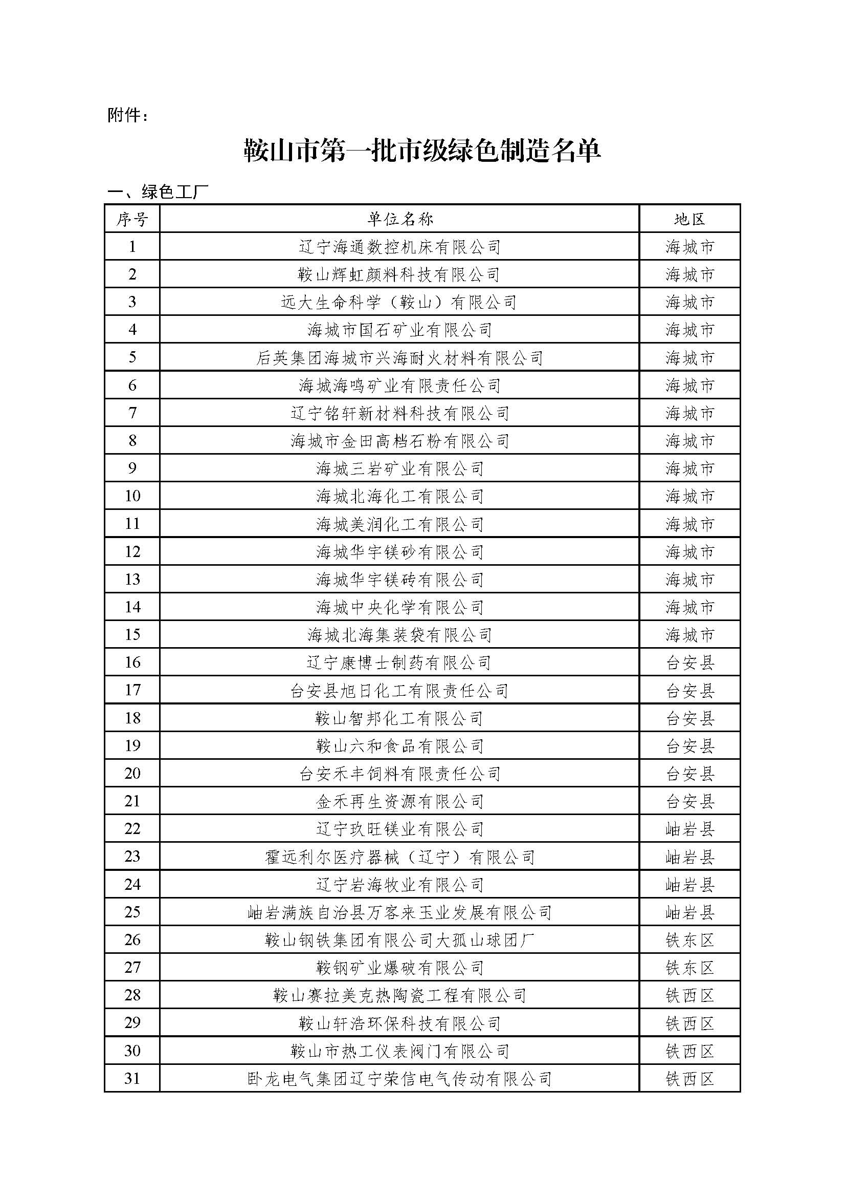 為進(jìn)一步完善鞍山市綠色制造體系,加快推動(dòng)工業(yè)綠色發(fā)展,助力工業(yè)領(lǐng)域?qū)崿F(xiàn)碳達(dá)峰碳中和目標(biāo),鞍山市工信局組織開展了鞍山市第一批市級(jí)綠色制造名單評(píng)選工作,經(jīng)企業(yè)自愿申報(bào)、各縣(市)區(qū)初審、征求相關(guān)部門意見、社會(huì)公示等程序,現(xiàn)將鞍山市第一批市級(jí)綠色制造名單予以公布(詳見附件)。