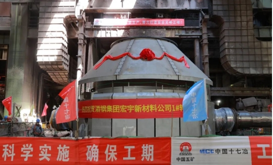 針對首次轉(zhuǎn)爐推爐的復雜性和現(xiàn)場空間受限等挑戰(zhàn),宏宇新材料公司項目團隊通過20余次桌面推演,制定原轉(zhuǎn)爐本體、托圈拆除下線及新設備吊裝、上線等方案,做足推爐前的各項準備。施工中,技術人員根據(jù)實際情況動態(tài)優(yōu)化工序,最終在1小時內(nèi)完成了新轉(zhuǎn)爐推爐工作,全程實現(xiàn)了安全“零事故”、質(zhì)量“零偏差”。