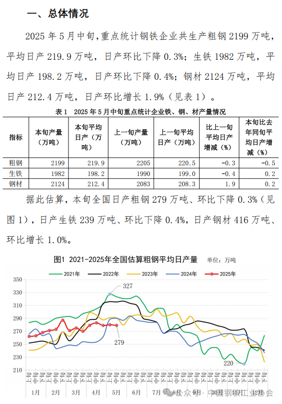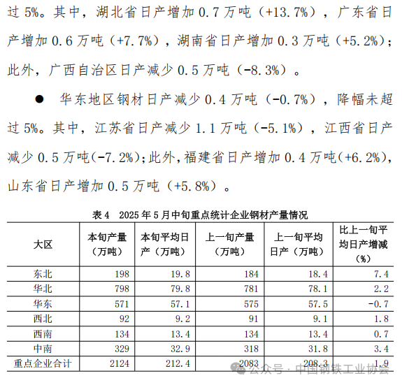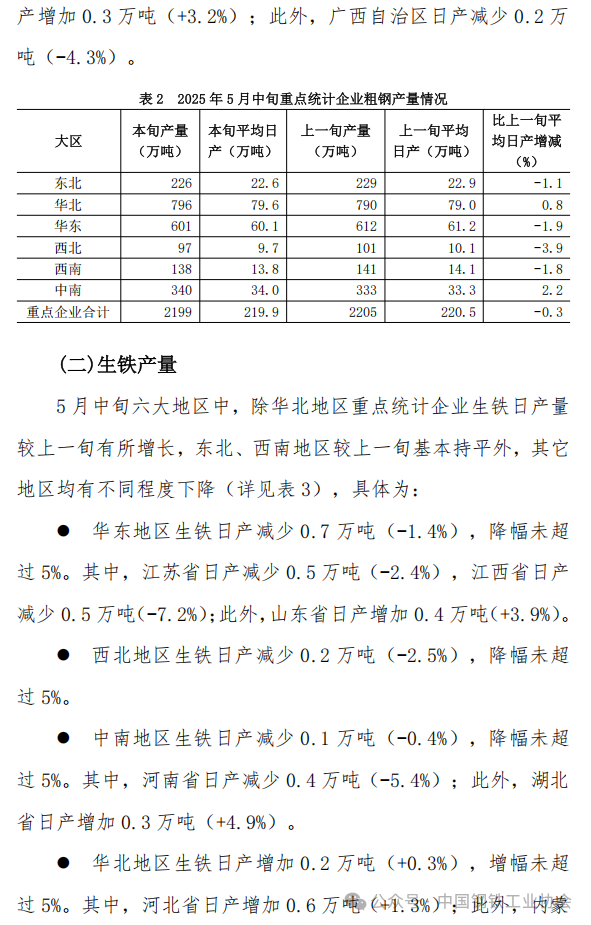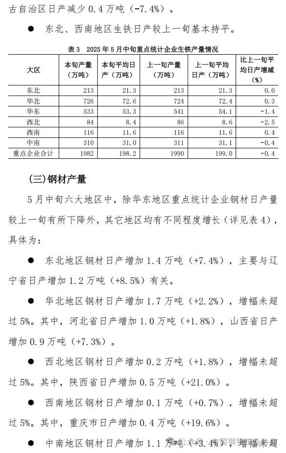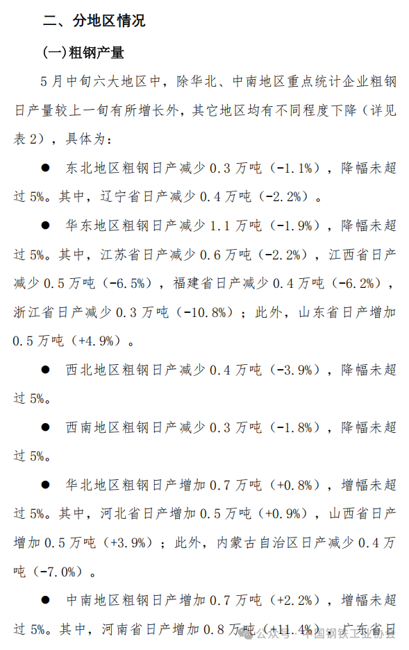 5月中旬重點企業(yè)鋼鐵產(chǎn)量旬報
