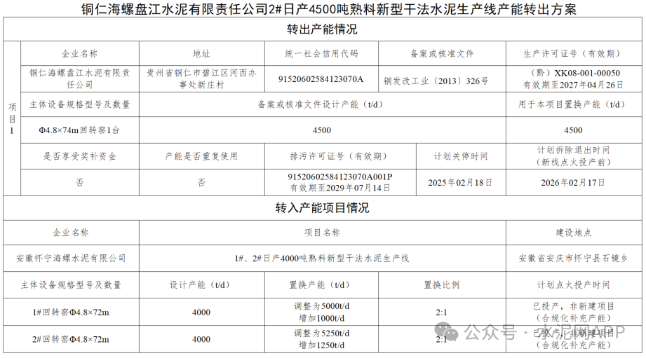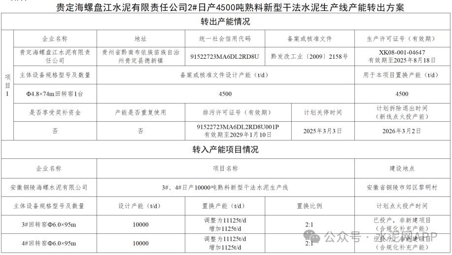 6月10日,貴州省工信廳發(fā)布“關(guān)于貴定海螺盤江水泥有限責任公司2#日產(chǎn)4500噸熟料新型干法水泥生產(chǎn)線 產(chǎn)能轉(zhuǎn)出方案的公告”及“關(guān)于銅仁海螺盤江水泥有限責任公司2#日產(chǎn)4500噸熟料新型干法水泥生產(chǎn)線產(chǎn)能轉(zhuǎn)出方案的公告”。根據(jù)公告,貴定海螺盤江水泥關(guān)停退出一條4500t/d熟料生產(chǎn)線,產(chǎn)能用于補充安徽銅陵海螺水泥兩條萬噸線,置換比例2:1。