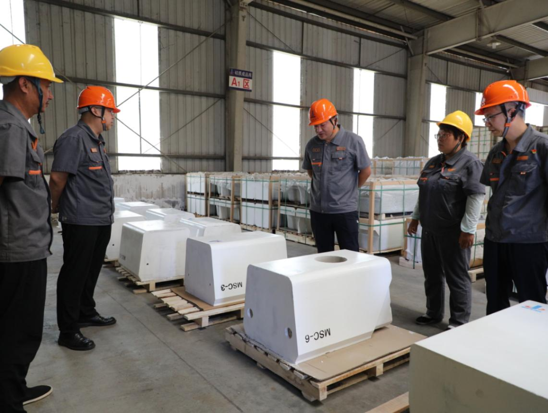 6月16日,中鋼洛耐黨委書記、董事長熊建,常務(wù)副總經(jīng)理耿可明,副總經(jīng)理張利新深入預(yù)制件作業(yè)區(qū),針對第三代焦?fàn)t爐門磚研制成果及應(yīng)用開展專項(xiàng)調(diào)研。
