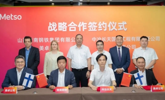 近日,晉南鋼鐵集團總裁張?zhí)旄Ec美卓大中華區(qū)財務行政與業(yè)務發(fā)展副總裁文揚之代表雙方在湖南長沙美卓中國研發(fā)中心簽署戰(zhàn)略合作協(xié)議。中冶長天國際工程有限責任公司董事長樂文毅,中冶長天國際工程有限責任公司副總經(jīng)理喻明軍;美卓全球礦山業(yè)務總裁Piia Karhu,美卓全球礦山業(yè)務副總裁Rogerio Rodrigues,美卓大中華區(qū)總裁梁曉峰;集團董事長鄭家平見證簽約。