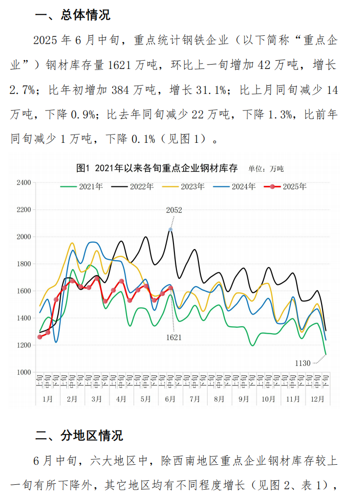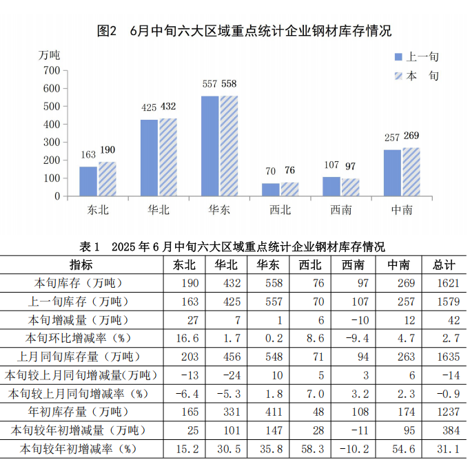 6月中旬重點統(tǒng)計企業(yè)鋼材庫存旬報
