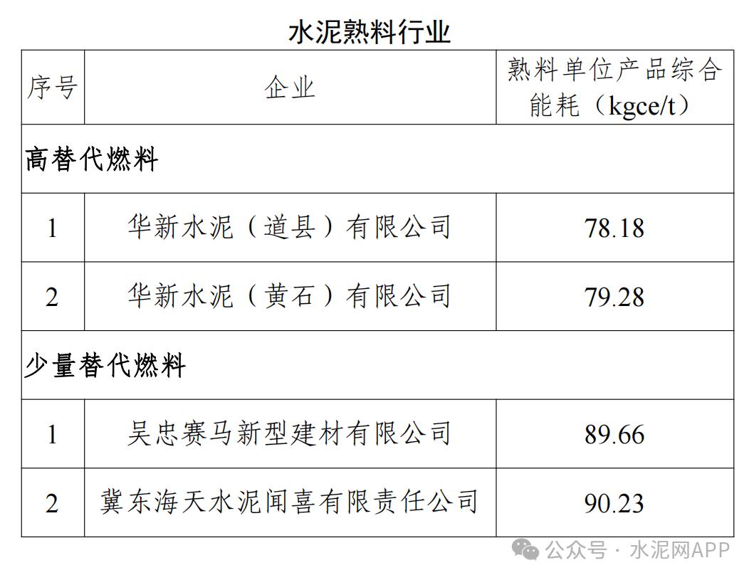 近日,工業(yè)和信息化部、國家發(fā)展和改革委員會、國家市場監(jiān)督管理總局聯(lián)合發(fā)布《2023年度重點行業(yè)能效“領(lǐng)跑者”企業(yè)名單》,其中華新水泥(道縣)有限公司、華新水泥(黃石)有限公司、吳忠賽馬新型建材有限公司、冀東海天水泥聞喜有限責(zé)任公司入選。