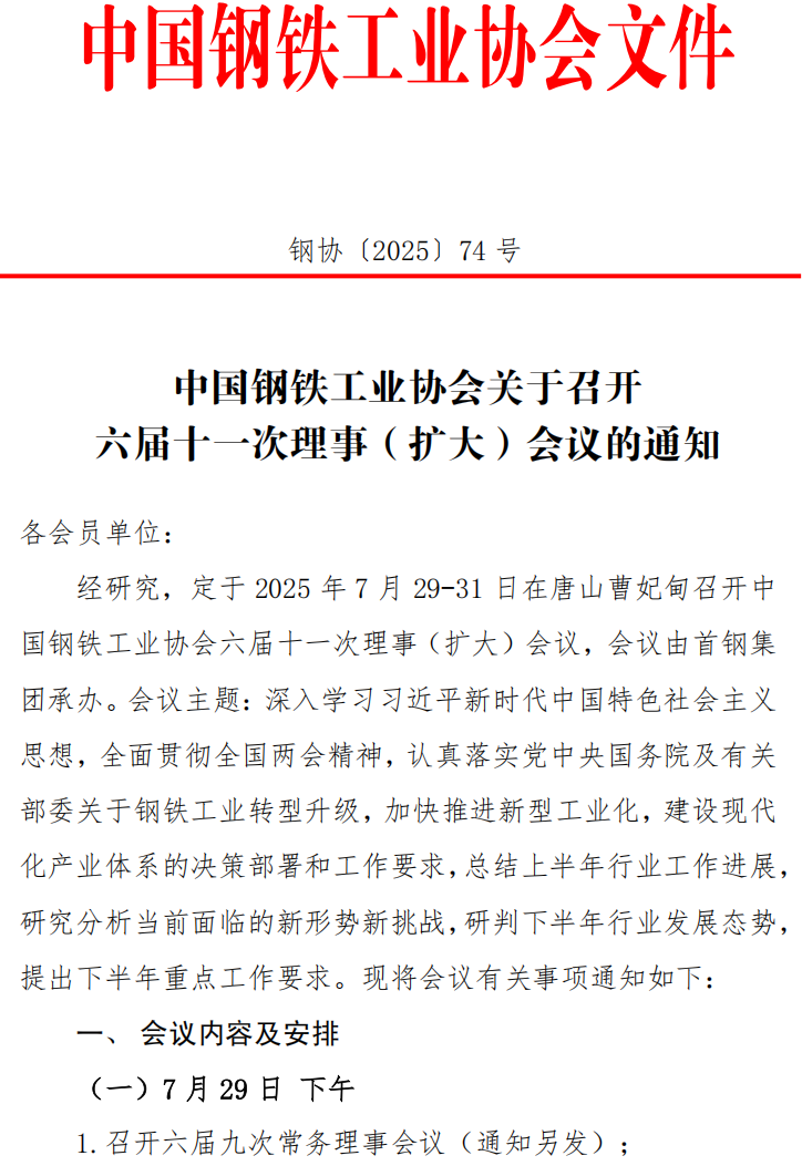 中國鋼鐵工業(yè)協(xié)會關(guān)于召開六屆十一次理事(擴大)會議的通知?