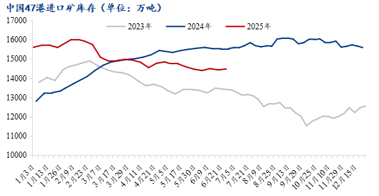 2.4庫存:6月中國47港鐵礦石庫存整體呈現(xiàn)累庫趨勢